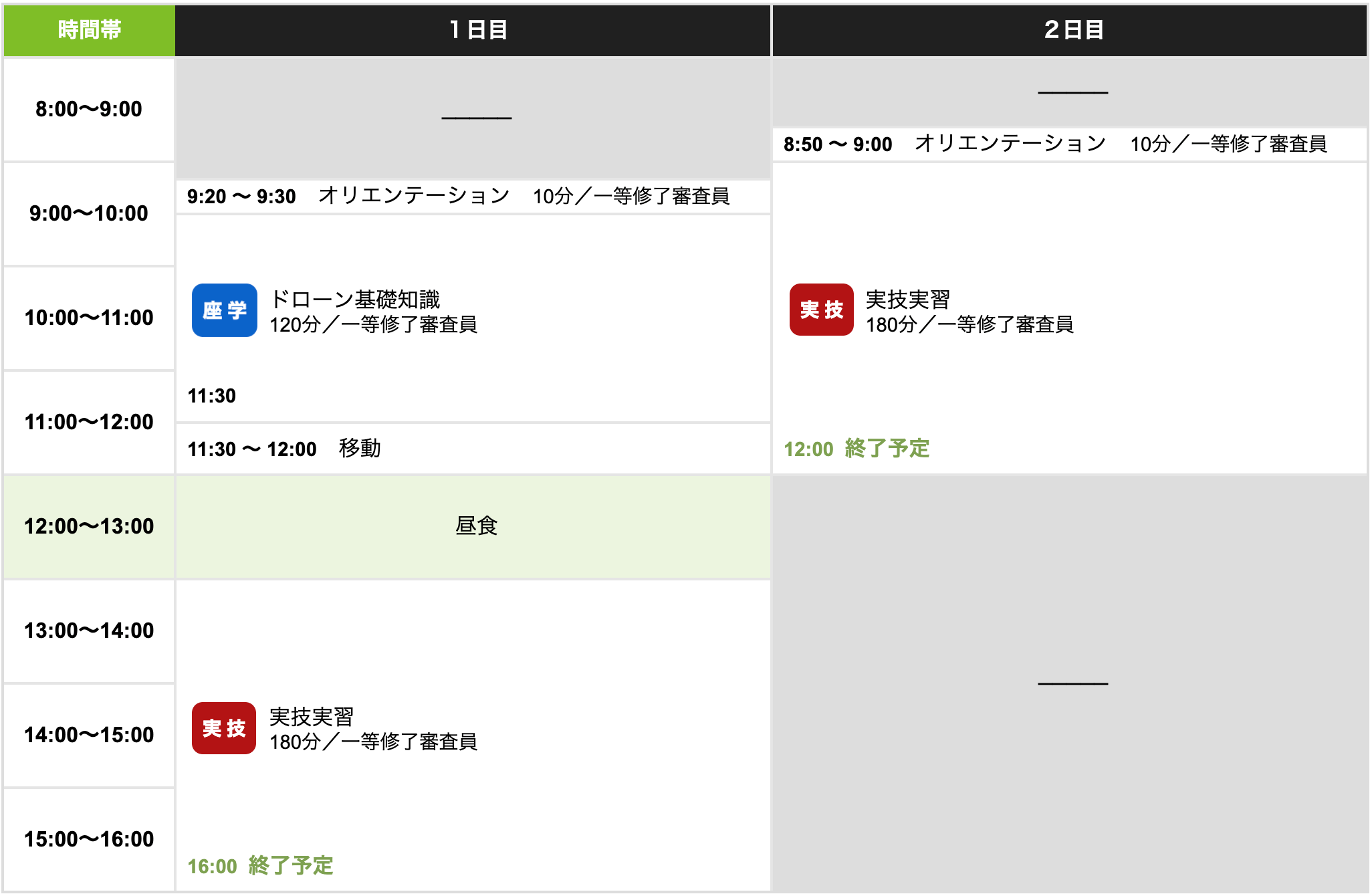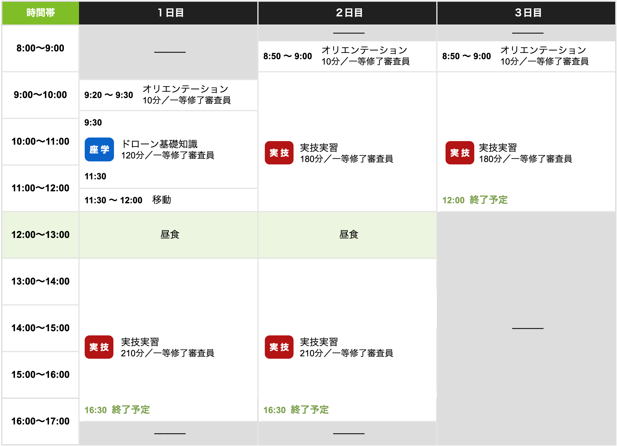 ドローンの操縦が未経験の方から、操縦経験があるものの更なるスキルアップを目指されるかたなど多くの方に受講いただけるカリキュラムとなっています。